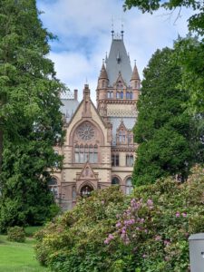 Blick auf die die klassizistische Drachenburg oberhalb von Königswinter