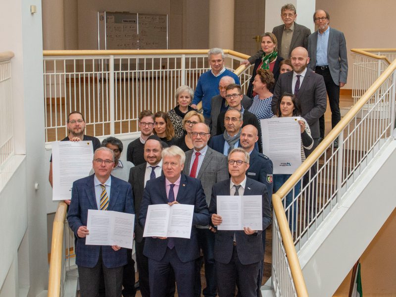 Heute haben für die Netzwerkpartner – rund 20 unterschiedliche Gruppierungen und Institutionen – Oberbürgermeister Ullrich Sierau, Klaus Wegener, Präsident der Auslandsgesellschaft, sowie Polizeipräsident Gregor Lange die Grundsatzerklärung im Dortmunder Rathaus unterzeichnet. Das Netzwerk zur Bekämpfung des Antisemitismus in Dortmund ist seit Oktober 2018 aktiv. Der Entwurf der Grundsatzerklärung war der erste bedeutende Arbeitsschritt des Netzwerkes.
