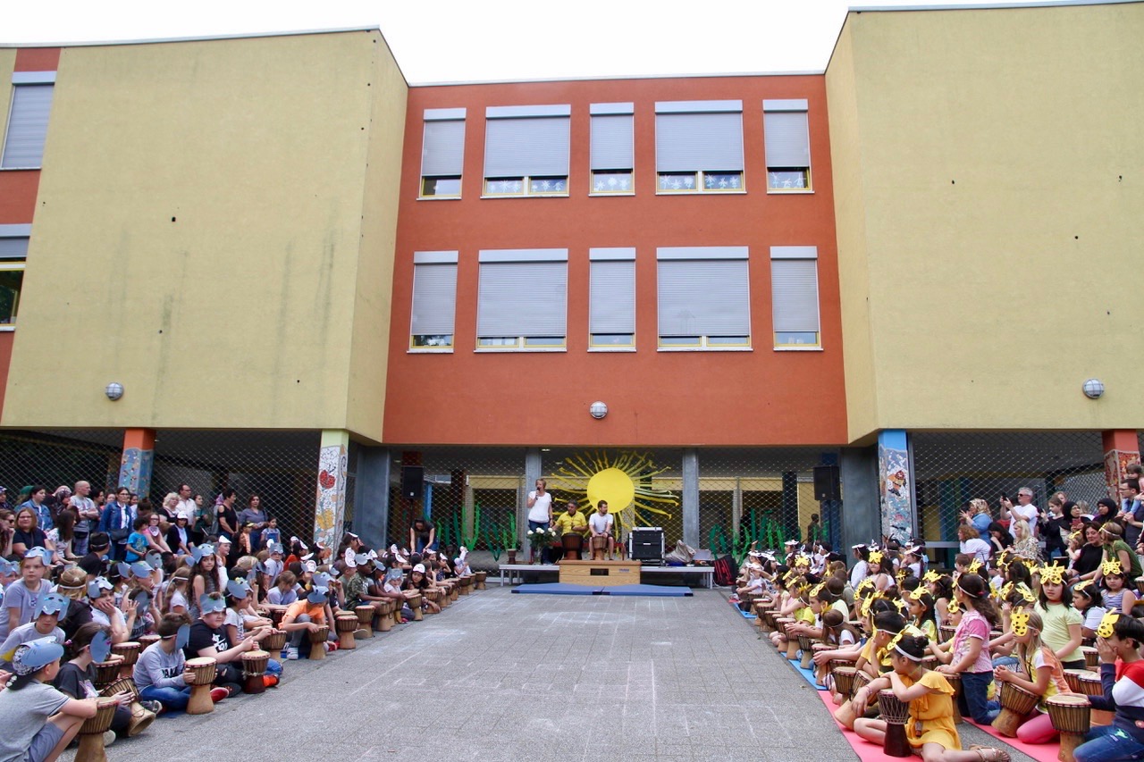 Am 03.06.2019 startete das Projekt „Trommelzauber“ an der Westhausen-Grundschule in Westerfilde. Am Freitag fand dann die Abschlussveranstaltung der Vorführung „Tambo Tambo – eine Reise ins Trommelzauberland“ statt. Unter Anleitung des Trommelzauberteams trommelten, sangen und tanzten Kinder und Lehrkräfte zu afrikanischen Trommelrhythmen und Liedern. Jede Klasse übte jeden Tag eine Stunde das „Trommeln“.