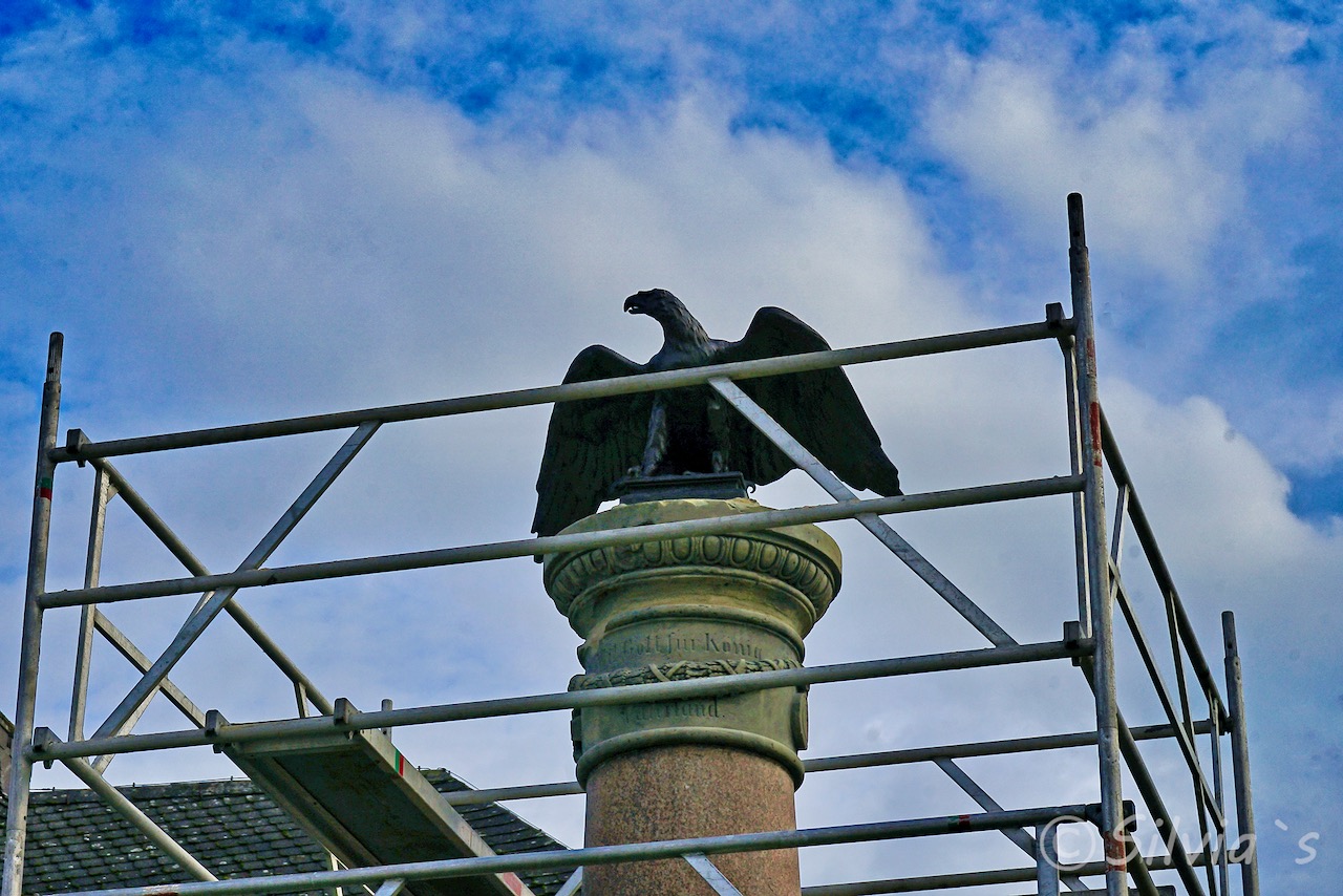 Das Kriegerdenkmal zum Andenken an die Gefallenen im Preußisch-Österreichischen und im Preußisch-Französischen Krieg (1866 und 1870/71), das 2014 im Sturm „Ela“ zerstört wurde, ist nun mit einem Nachguss des Vogels wieder komplett. Mit Hubwagen mit Kran wurde der Adler an Ort und Stelle platziert. Mit dabei waren u.a. Bezirksbürgermeister Wilhelm Tölch und sein Stellvertreter Gerhard Kuck, weitere Mitglieder der Bezirksvertretung Mengede, VertreterInnen der Stadt und die Restauratoren Martin Möbus und Werner Paetzke.