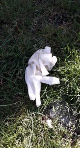 Wenn Sie augenblicklich zu Fuß durch den Stadtbezirk gehen, werden Sie auf Bürgersteigen, in Rinnsteinen und in Gräben vermehrt auf diese Umweltsünden stoßen. Heute zählte ich in einem Graben vor dem REWE in Nette 18 dieser Handschuhe.