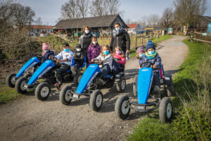 Die Kinder im Alter von 6 bis 12 Jahren wurden in vier Gruppen mit jeweils 10 Kindern unterteilt – jede Gruppe hatte feste Betreuer. Jedes Kind und alle Betreuer wurden täglich getestet. Jede Gruppe hatte „ihre“ überdachte Scheune – kein logistisches Problem auf dem 12 Hektar großen Gelände. Ein Stundenplan gab vor, welche Gruppe zu welchem Zeitpunkt auf den Spielplatz durfte, den Sandkasten nutzen oder mit den Gokarts fahren konnte. Bei einem Wechsel wurden sämtliche Oberflächen desinfiziert.