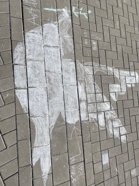Frau Kirchhoff erstellte Vorlagen für einen Fensterschmuck, der von den Schüler*innen farbig gestaltet werden konnte: Friedenstauben sowie andere Friedenssymbole und ukrainische Flaggen zieren nun die Fenster der Schule – ein Zeichen der Solidarität mit den Menschen, die ihre Heimat aufgrund der Kriegsschrecken verlassen müssen. Auch auf dem Schulhof waren Kinder im Religionsunterricht kreativ: Botschaften für Frieden sprechen aus den Herzen der Beteiligten.