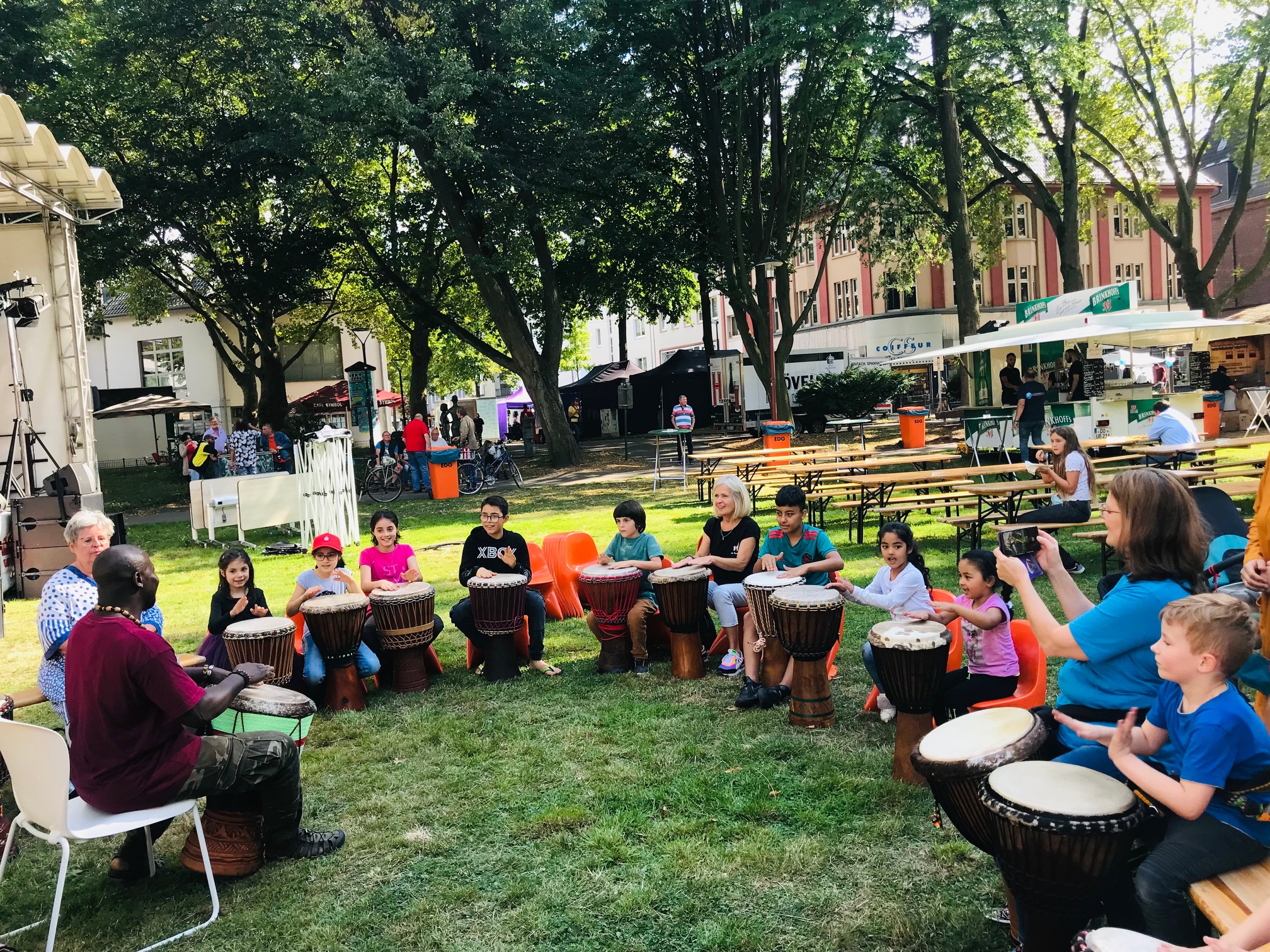 Im Amtshauspark gibt es ein reichhaltiges Angebot für groß und klein. Start war am heutigen Freitag um 15.00 Uhr. Die „Mama Limbo Drumming School“ lädt die BesucherInnen zu einem Trommelworkshop mit anschließendem Auftritt ein.