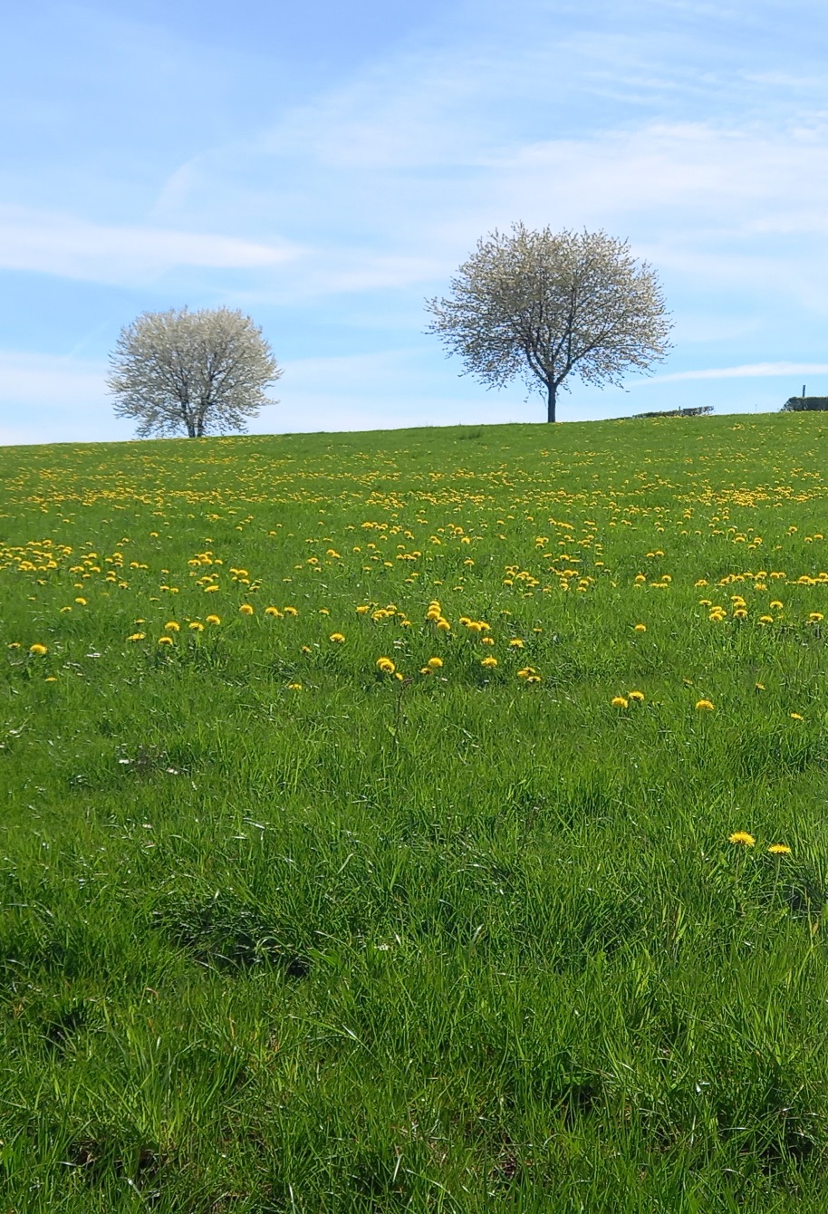 Diesmal passte alles. Die Züge und Busse waren pünktlich, keine langen Wartezeiten beim Umsteigen, eine fußfreundliche Wanderstrecke mit nur geringem Asphaltanteil, eine sehr schöne, abwechslungsreiche Gegend und herrliches Frühlingswetter. Und eine Gruppe von 17 Wandernden, die gut gelaunt und kommunikativ diese Wanderung genossen.