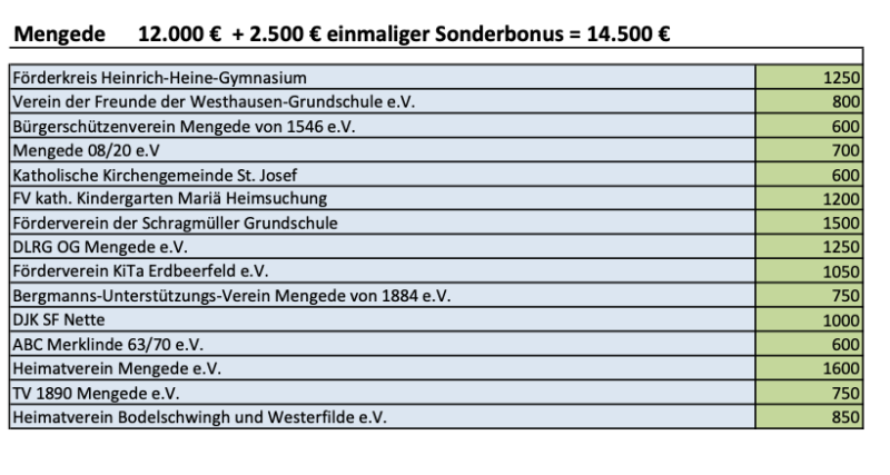 - Marktbereich Mengede (inklusive Westerfilde und Bodelschwingh) 12.000 Euro,
