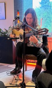 Dann aber stieg er wieder in die spanischen, kubanischen und südamerikanischen Musikwelten ein. Übersetzt von seiner Partnerin Silke Kühn gab er einen Überblick in die unterschiedlichen Stile des Flamencos – besonders auch aus den verschiedenen Regionen in Spanien. Dabei bearbeitete er seine Gitarre in teilweise atemberaubendem Tempo bis in die höchsten Bünde. Die Zuhörer staunten und waren begeistert, so eine Musik und diesen Ausnahmekünstler kennenlernen zu können. Reynier Marino spielte drei Sets, dazwischen gab es jeweils eine Pause. In der ersten Pause bekamen alle Gäste einen Tapas-Teller.