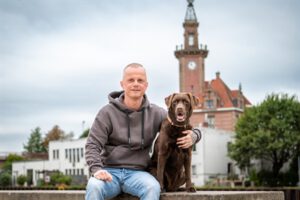 Thorsten Habel und seine Assistenzhündin Hanni am Dortmunder Hafen.