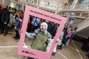Dortmund sei eine Stadt der Vielfalt und brauche die Migration, betonte Kalouti. „Aber Vielfalt ist noch kein Wert an sich. Erst, wenn wir aus dieser Vielfalt zu einer neuen Einheit werden, dann haben wir es geschafft. Wenn wir uns in ein paar Jahren nicht mehr fragen werden: ,Wo kommt Ihr her?‘.“ Dortmund möge ein Sehnsuchtsort für sie werden, wünschte der Oberbürgermeister den Anwesenden: Ein Ort, „wo Sie Ihre Träume verwirklichen können, wo Sie Ihr Leben nach eigener Façon gestalten können und glücklich werden können; wo Sie Ihren Kindern eine neue Perspektive und eine neue Heimat bieten.“