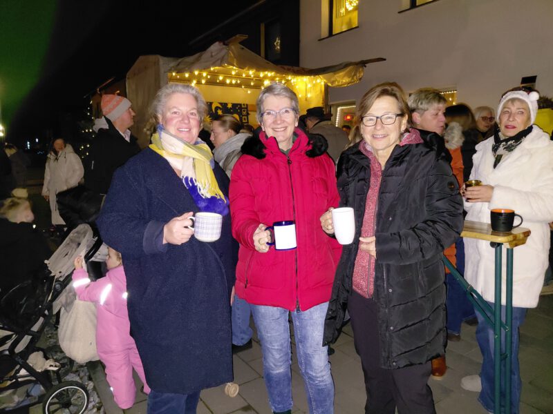 Viertel vor sechs Uhr abends sah man bereits, wie sich in Deusen kleine Grüppchen mit einer Tasse in der Hand auf den Weg machten – von allen Seiten kamen sie. Zum viertem Advent traf sich die Dorfgemeinschaft – rund 100 Leute aus der Nachbarschaft trafen sich – wie immer ab 18 Uhr – diesmal im Vorgarten von Familie Diederich und Brozda im Stiegenweg 20. Wer sein „Türchen“ öffnet, verteilt auf eigene Kosten Glühwein und Schnittchen an die Gäste. Manchmal kommen auch noch Kakao und Kekse dazu. Am vierten Advent gab es dazu sogar noch eine heiße Suppe und die Gastgeber hatten sich sehr viel Mühe mit einer lichtergeschmückten Überdachung, leiser Musik und etlichen Stehtischen gegeben.