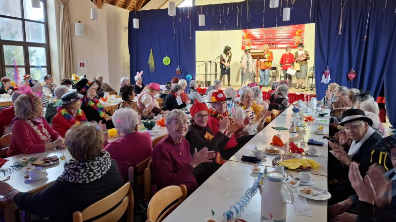 Knapp 100 Frauen kamen zur Weiberfastnacht in St. Remigius zusammen und erlebten nach einem Kaffeetrinken ein närrisches Feuerwerk. „Helau, wir grüßen euch im Saal“, schmetterten die Damen zu Beginn, bevor Gemeindereferent Markus Kohlenberg von seinen Erlebnissen als Mitarbeiterin in einer Pommesbude berichtete. Die Theatergruppe der kfd rund um Ulla, Andrea, Lisa und Petra sorgte dann mit einem Anspiel rund um das Märchen „Aschenbrödel“, welches Gaby zum Besten gab, für viele Lacher im Saal. Im nächsten Sketch musste Ehemann Adalbert seiner minderbegabten Frau so manches Fremdwort übersetzen. Dann stimmte die Theatergruppe ein freudiges Lied auf die Zeit nach den Wechseljahren an.